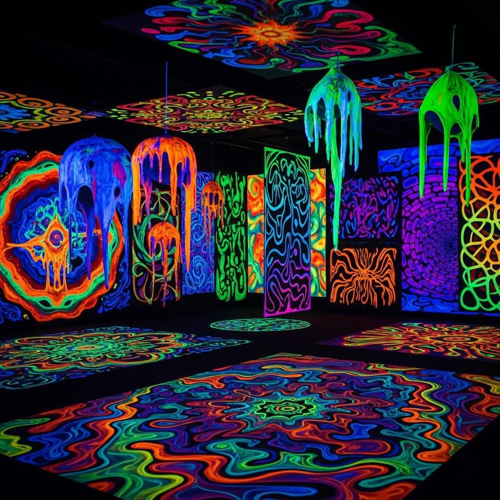 Paintings, sculptures & UV-reactive immersive decor
