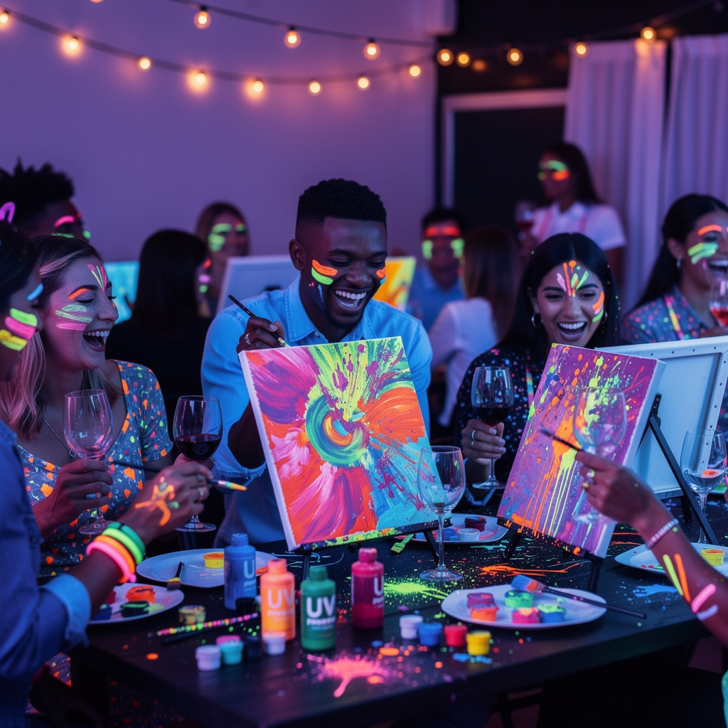 - Create glowing artwork in our neon UV painting workshop