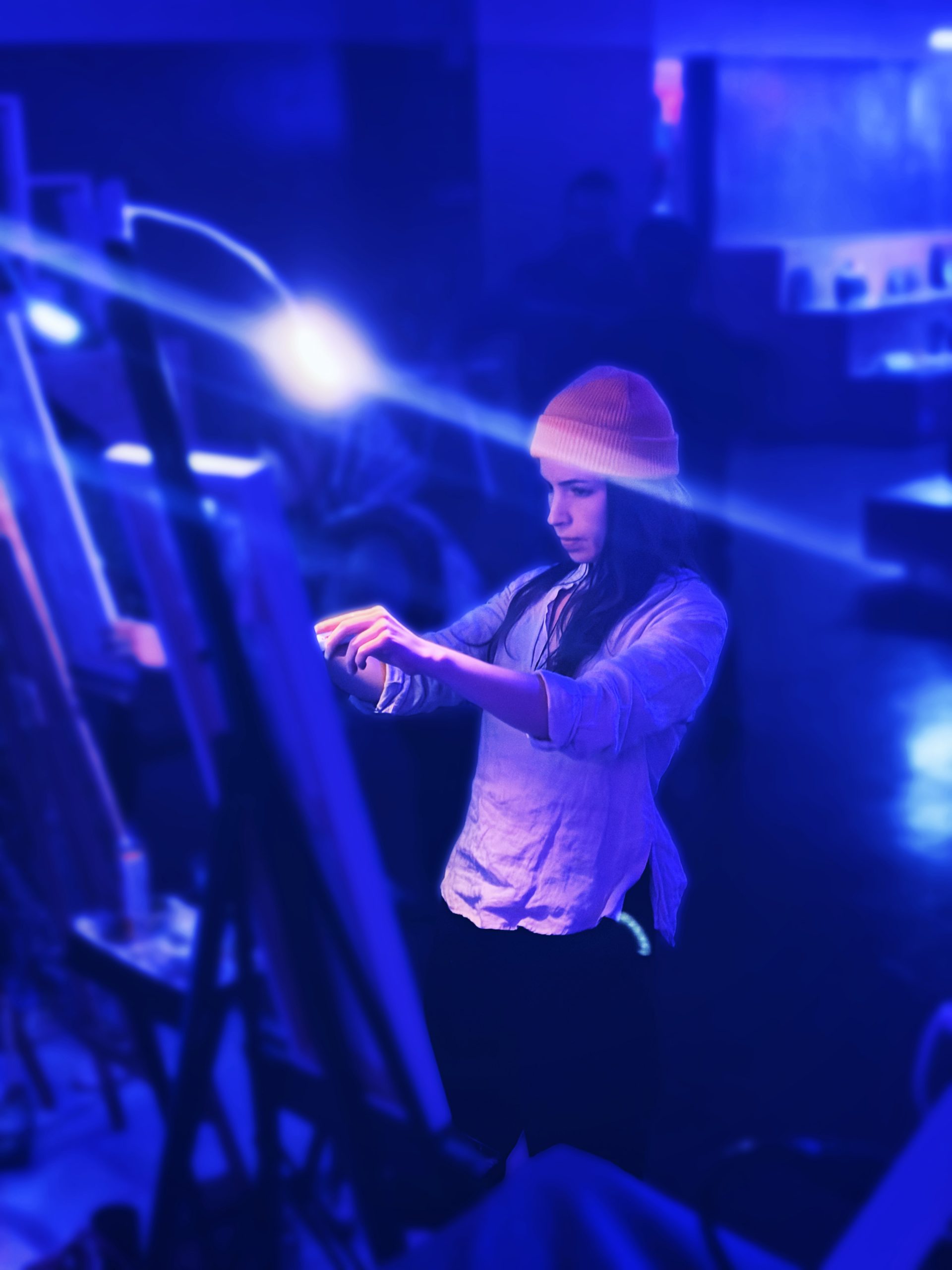 She is known for her large-scale paintings that shift in atmosphere between day and night, creating immersive environments that invite reflection and emotional depth. Sina (Sinarc) is also an essential part of our artistic work and represents half of the creative contribution behind what we do.