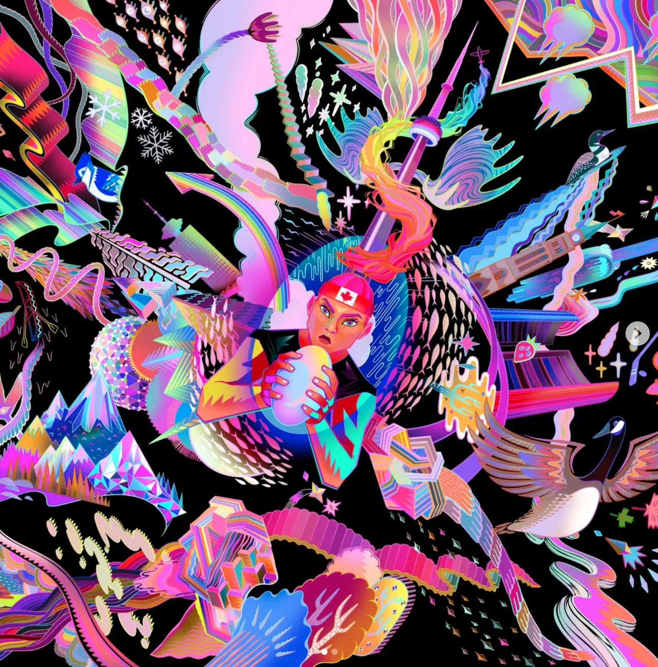 Bio: Born and raised in Toronto, Astrobe is a Canadian artist whose journey has been a lifelong pursuit of creativity. He began as an illustrator designing t-shirts and airbrush art before mastering the craft of tattooing for over a decade. Inspired by hip-hop, cartoons, and toys, Astrobe’s work blends nostalgia with a futuristic vision. For the past six years, he’s been developing a distinct body of sci-fi-inspired paintings, each piece a crystallized fragment of imagination, infused with emotion and endless possibility. Astrobe’s work captures the awe of discovery, the brilliance of high-tech dreamscapes, and the boundless potential of the future. Now stepping forward as the curator of his own universe, Astrobe shares their energy through paintings, offering visionary works to decorate and inspire.